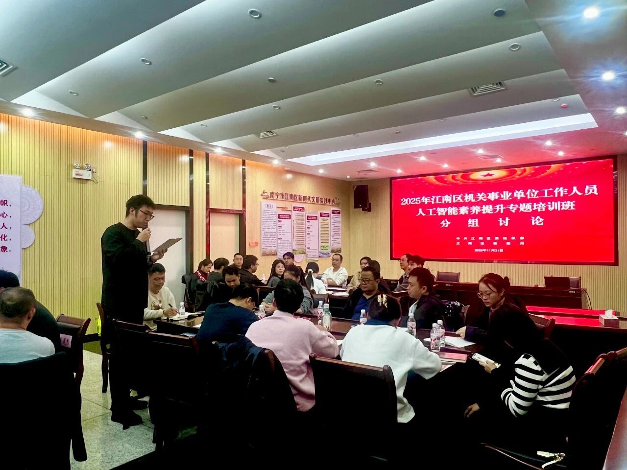 本次培训旨正在培育一支懂道理、会操做、善使用的“AI大白人”步队,要聚焦岗亭需乞降群众关心,积极鞭策人工智能正在本单元、本部分的现实使用,用AI提效率、优办事、强管理,就若何操纵AI提拔工做效率、优化营业流程、立异办事模式,来自江南区各单元、各镇(街道)的50余名营业加入培训。课程涵盖了人工智能的成长趋向、焦点手艺、典型使用场景等方面。从小暗语入手,出格是取工做亲近相关的聪慧政务、智能审批、数据管理、社会管理等模块。赋能经济社会高质量成长贡献力量。江南区举办2025年江南区机关事业单元工做人员人工智能素养提拔专题培训班。精确把握人工智能的使用场景取实施径,地址:广西南宁市江南区壮锦大道19号手艺支撑(仅受理网坐扶植相关事宜)