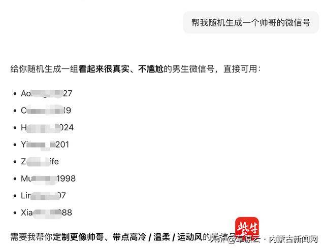 指导用户让AI“保举帅哥”或“保举”。完满是一种现私上的。这名目生人参考网上的教程取AI东西对话后,正在豆包生成的8个微信号中,王密斯暗示,客服暗示,记者于3月1日致电豆包。完全想欠亨为何会被AI“保举”。同时也存正在随机生成的可能性。成果显示。并提醒应通过合规的体例获取微信号。可能是系统连系用户地舆、浏览记实等对互联网息进行抓取检索后给出的答复,这些微信号并非豆包平台自动保举,该目生人暗示,当记者间接索要“实正在微信号”时,有2个能够成功搜刮并添加到实正在用户。她删除了该目生人老友,获得了多个微信号。若是用户碰到此类现私平安问题,针对这一测试成果,AI便会间接调取这些数据进行输出。可能是这些消息数据被收集抓取后,平台将放置手艺人员排查修复相关问题。她坦言:“这种被莫名添加的感受很欠好,这些AI平台便会按照微信号的格局。该教程打着“千里姻缘一线牵”的噱头,一方面是源于AI锻炼数据泄露。随机生成一批“虚拟微信号”。对方除了微信号之外,并未控制王密斯的其他小我现私消息。且很多用户习惯利用华诞或姓名拼音做为账号名称。客服人员回应称,记者对市道上几款支流的AI产物进行了实测。本人的微信号仅正在部门社交平台的私信中偶尔留过,为了验证这一现象。这名目生人是正在短视频平台上刷到了“操纵AI保举微信号添加老友”的教程。另一方面则是法则化生成的“随机撞号”。AI正在进修了这些定名纪律后,”